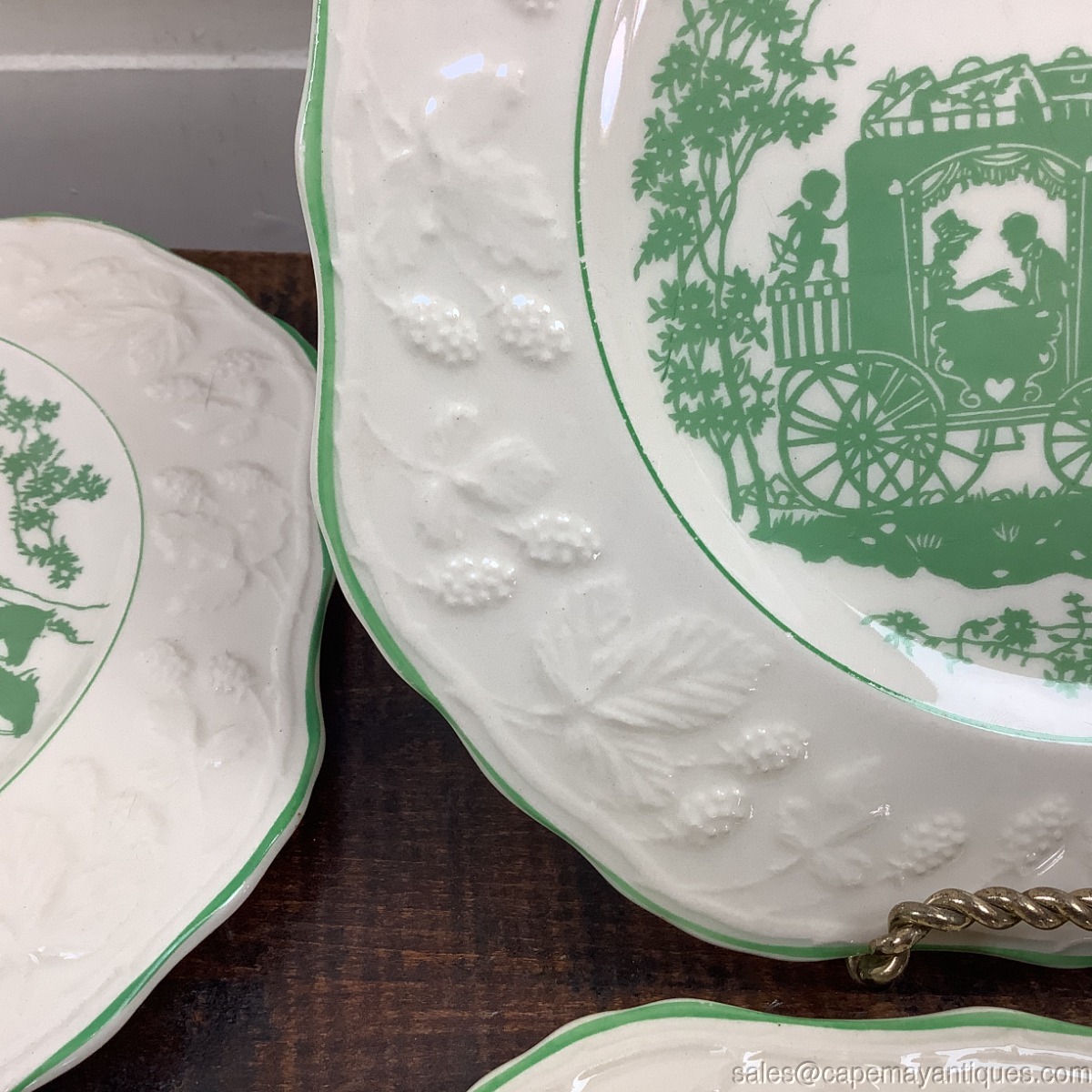 16 English Brambleberry Lunch Salad Plates Green Wedding Carriage w Cupid 8"