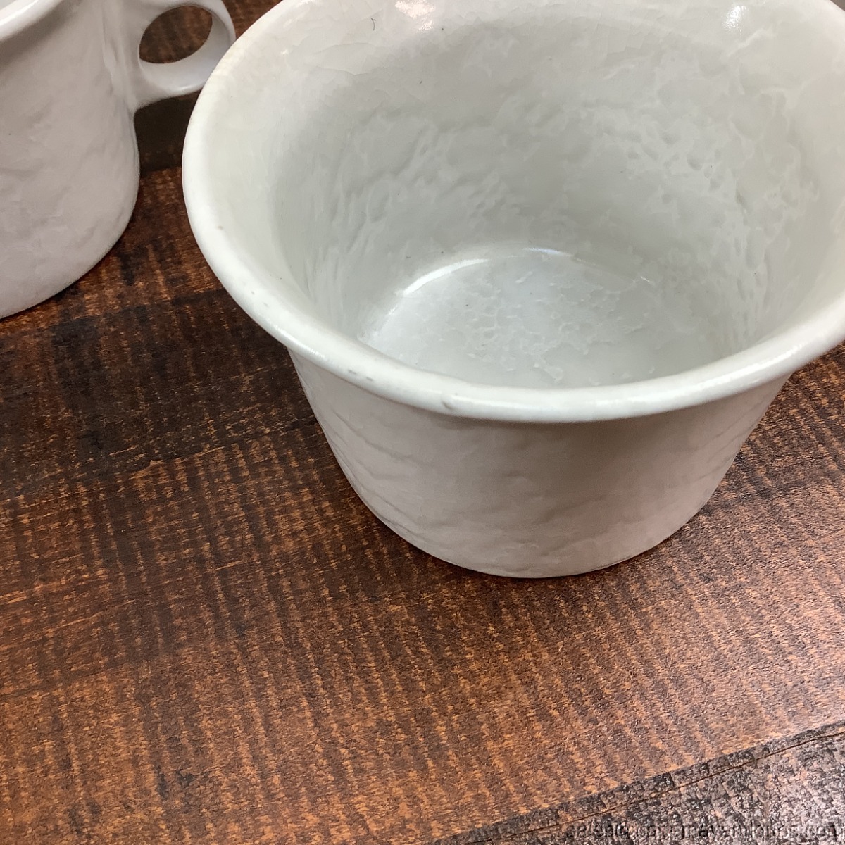4 Bennington Pottery Mugs White on White Agate Soup Mugs Trigger Handles 1537