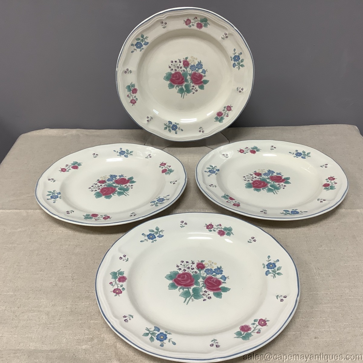 Lovely set of 4 dinner plates that are marked made in China. These are the Chateau pattern that is made by Gibson Design but these are not marked Gibson, just made in China. 4 dinner plates are 11" diameter. Good clean condition with no damage. wear, utensil marks etc.