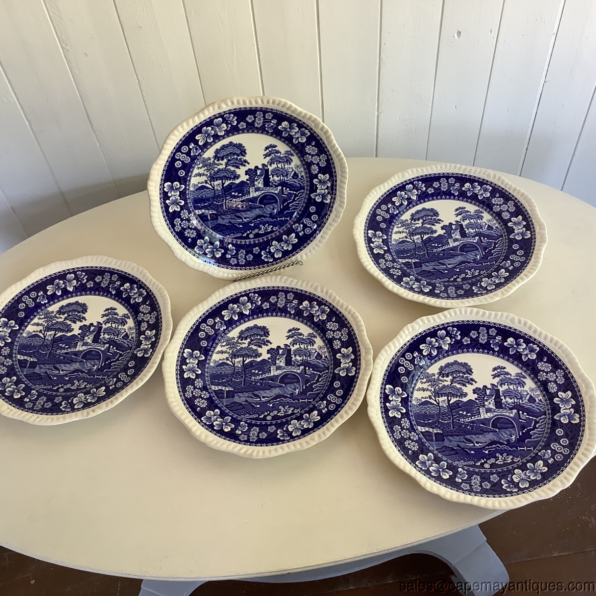 5 Spode Blue Tower Dinner Plates 10.75" Vintage English Porcelain
