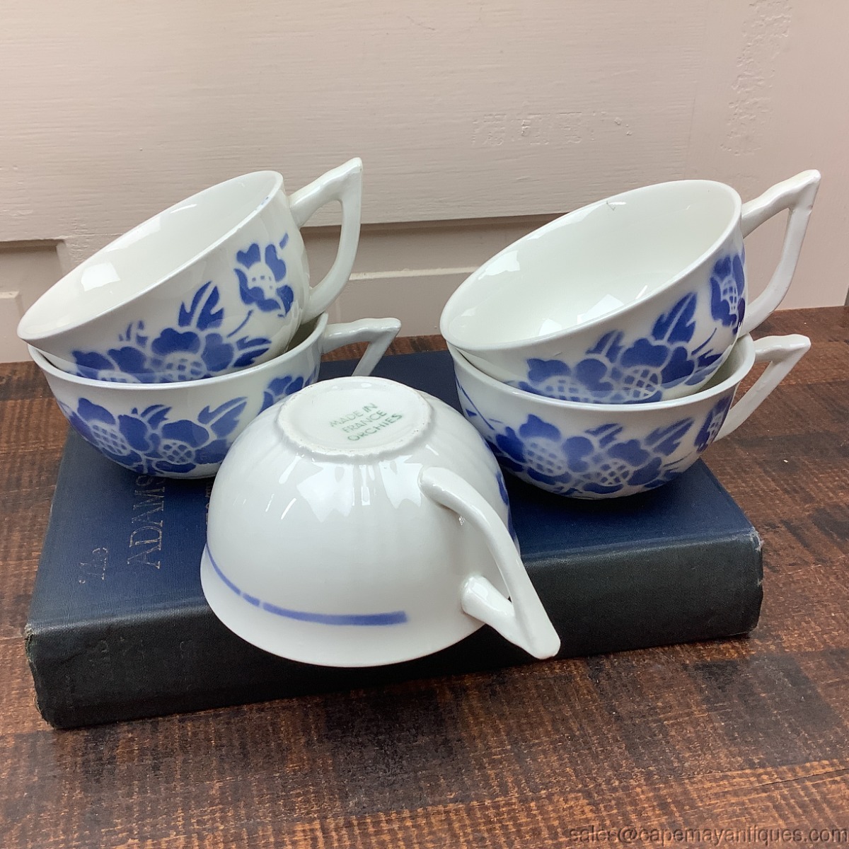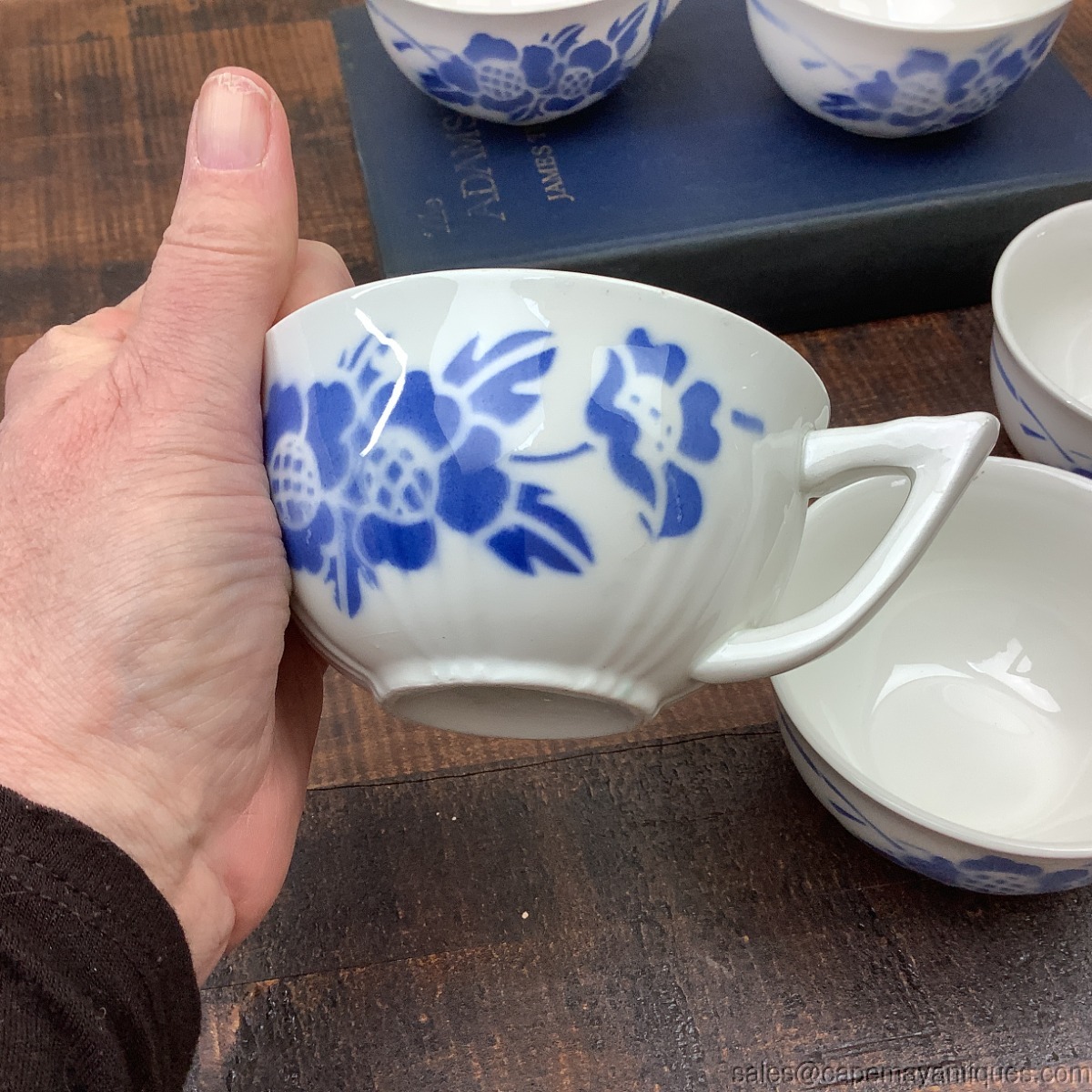5 Vintage Cafe Latte Cups Mugs Made in France Orchies Blue Floral White French
