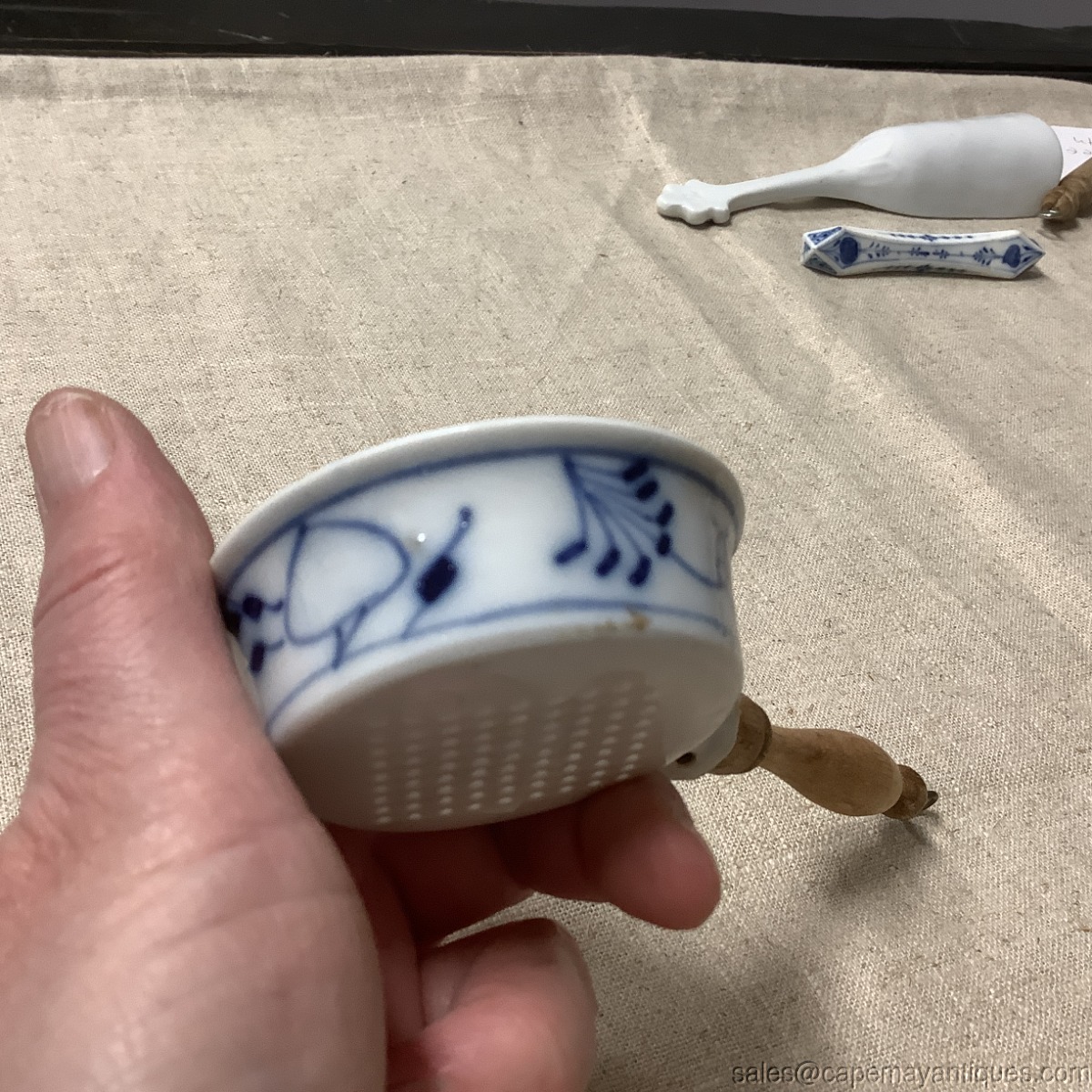 Antique Blue Onion Kitchen Sieve Tea Strainer Wood Handle German Utensil