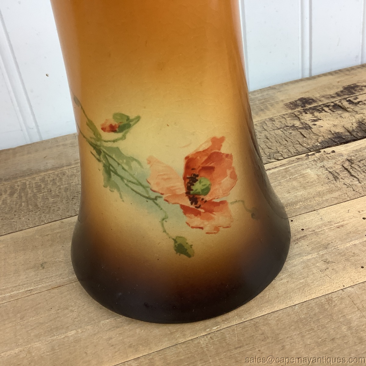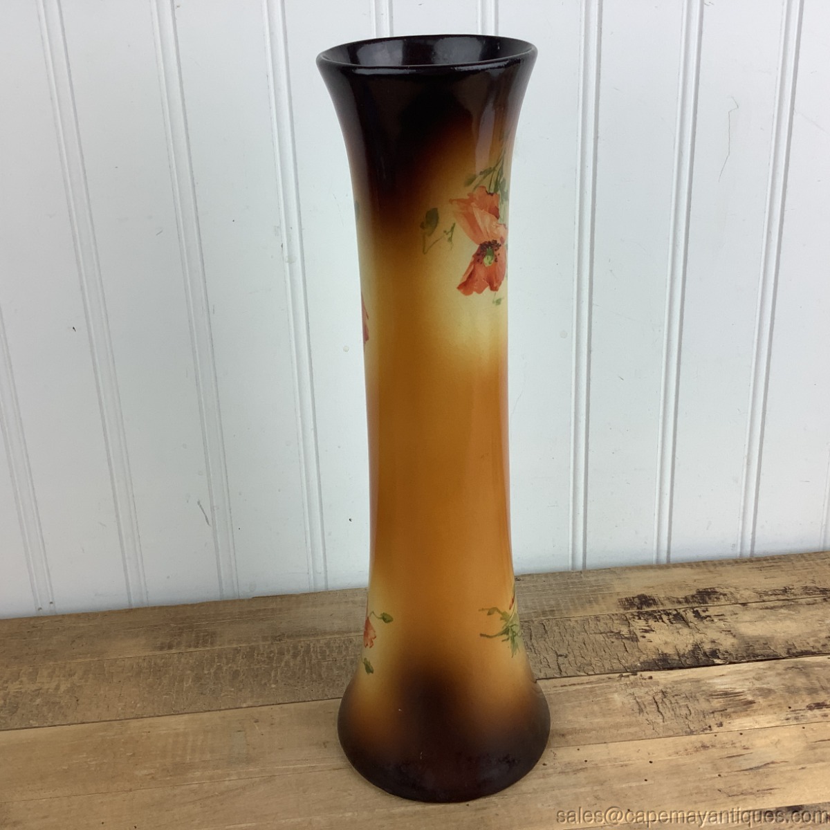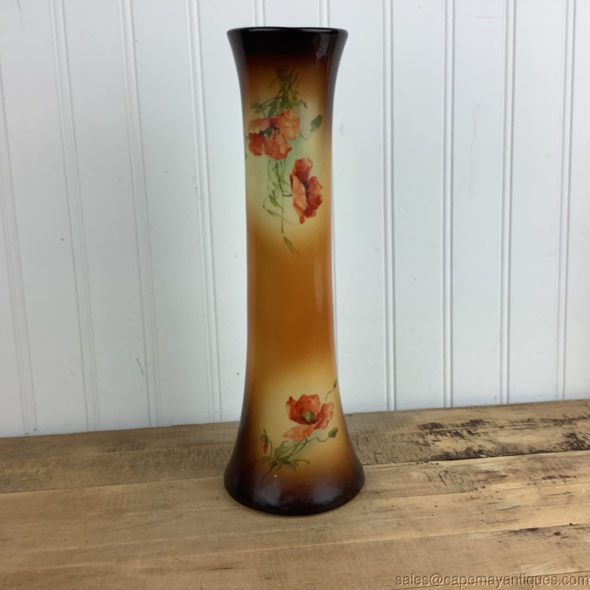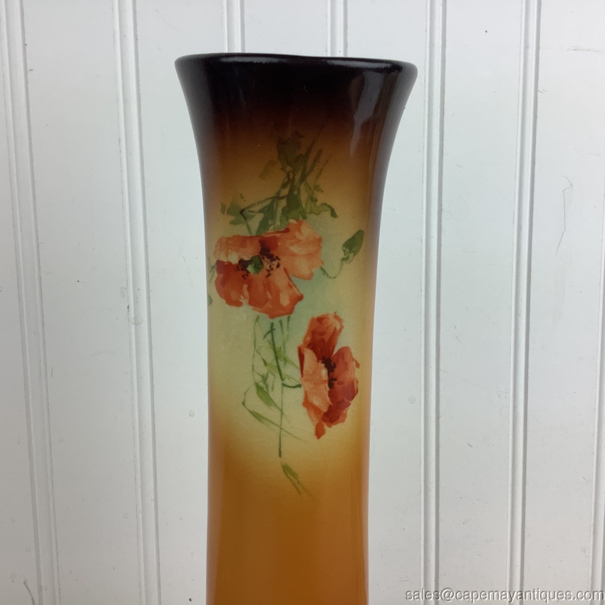 Antique IOGA Warwick Poppy Floral Vase Tall Slender Brow Red 11.75" T