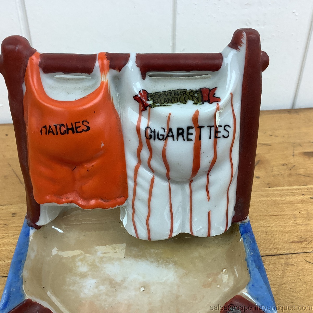 Ashtray Matches Cigarettes Porcelain Holder Backside of Pants Atlantic City