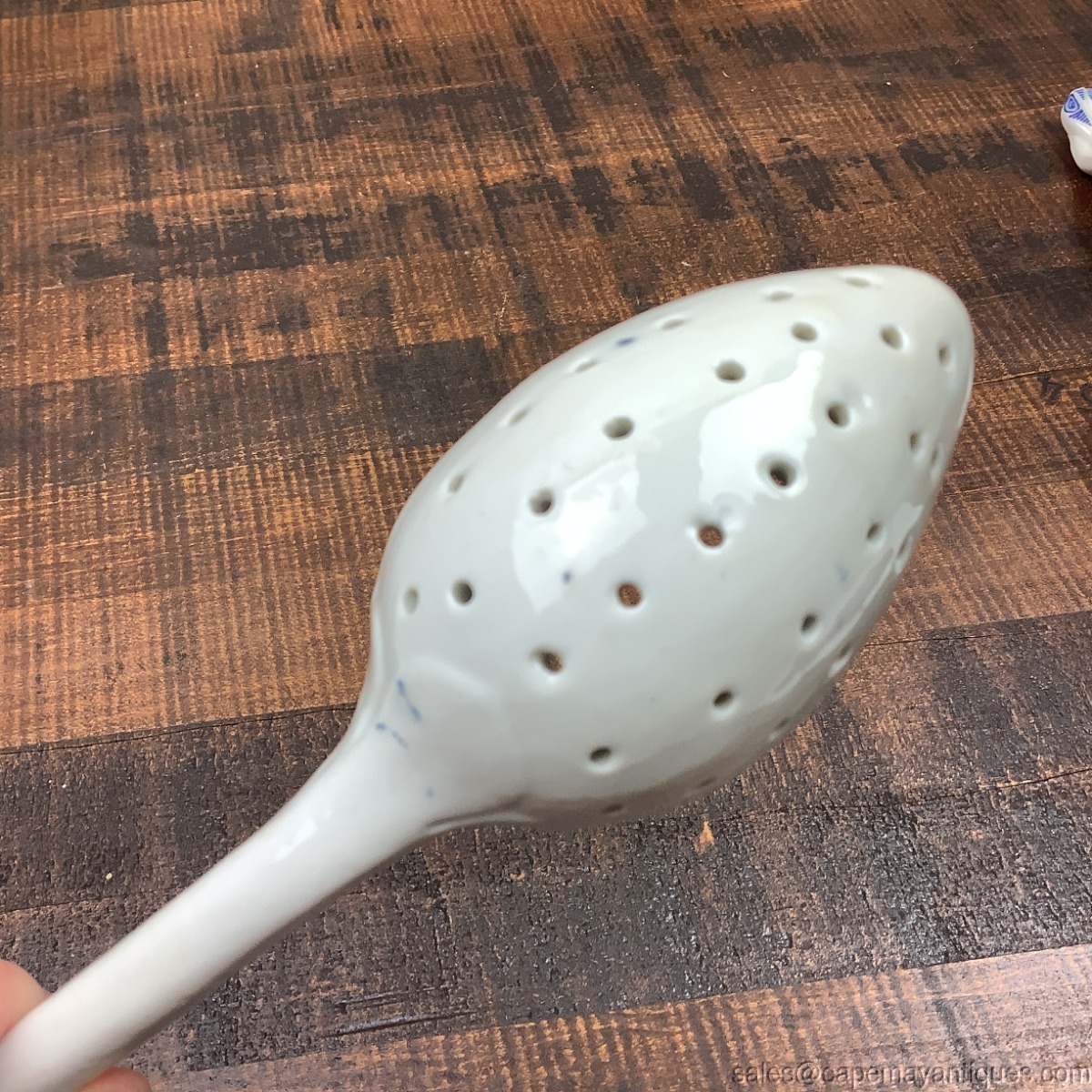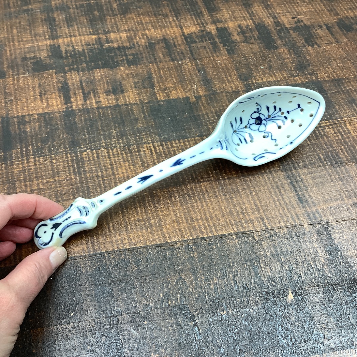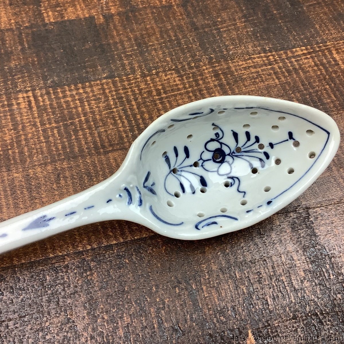 Lovely Blue Danube, Blue Onion slotted porcelain serving spoon. 10" length. Cup is 3.5" by 2.5". Also known as Straw Flower pattern. Good condition with no damage, no chips etc.