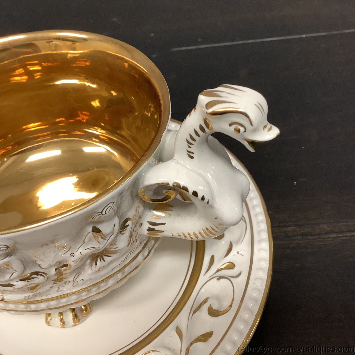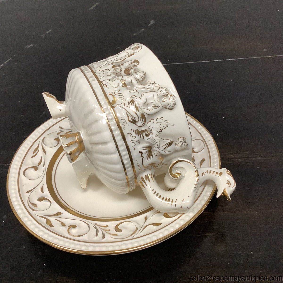 Capodimonte Teacup Saucer Set White Gold Dragon Handle Cherubs Angels 2226
