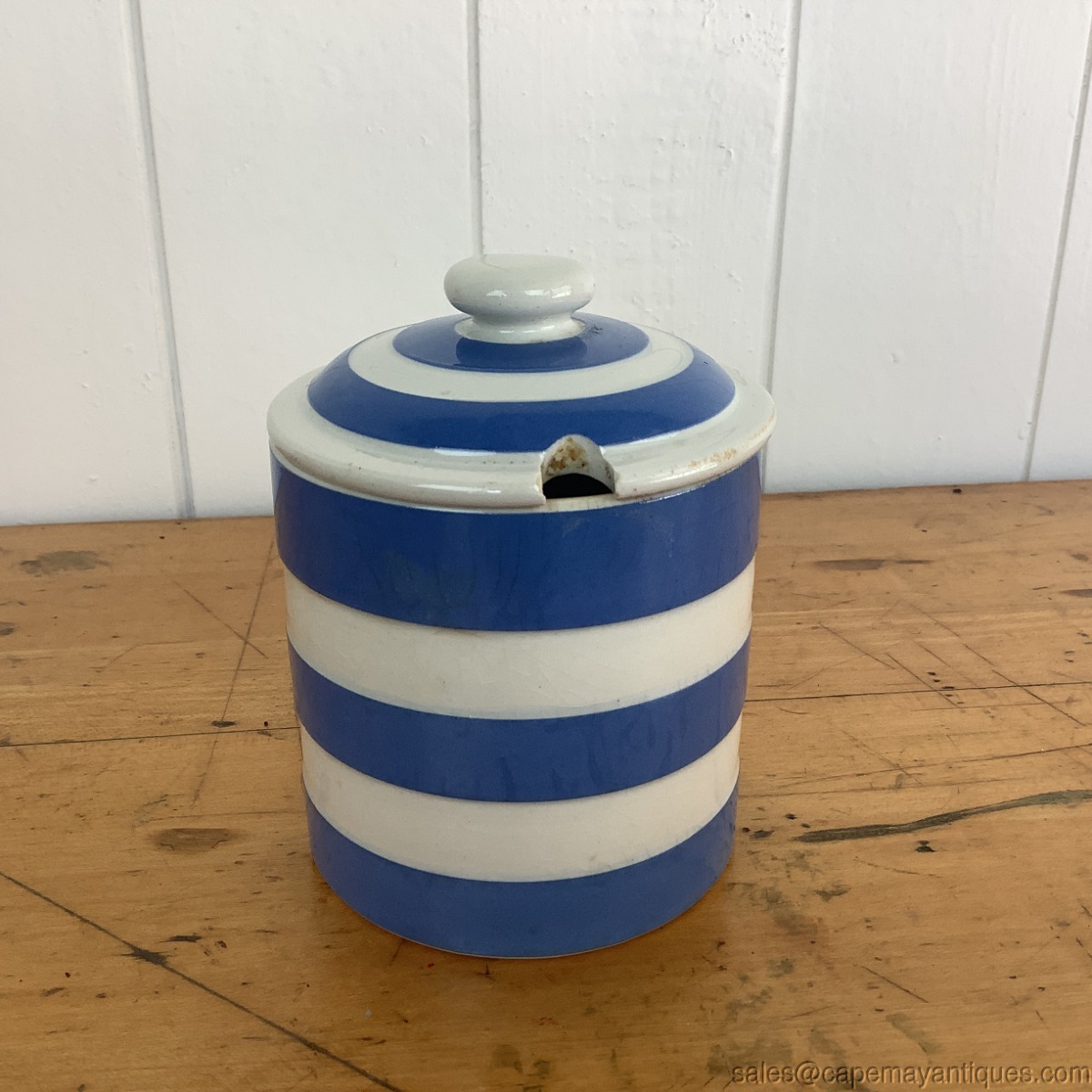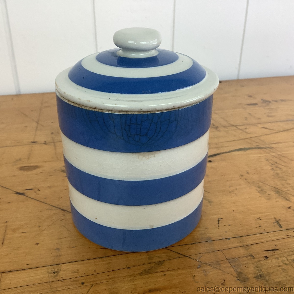 English Cornish Ware TG Green & Company Blue & White Lidded Sugar Jar C1930