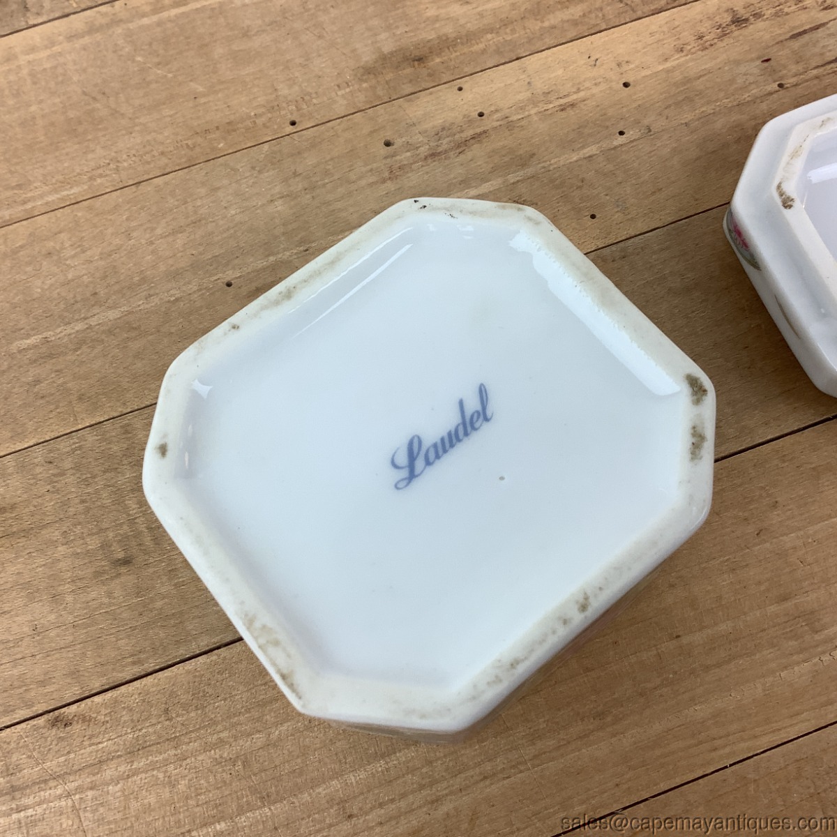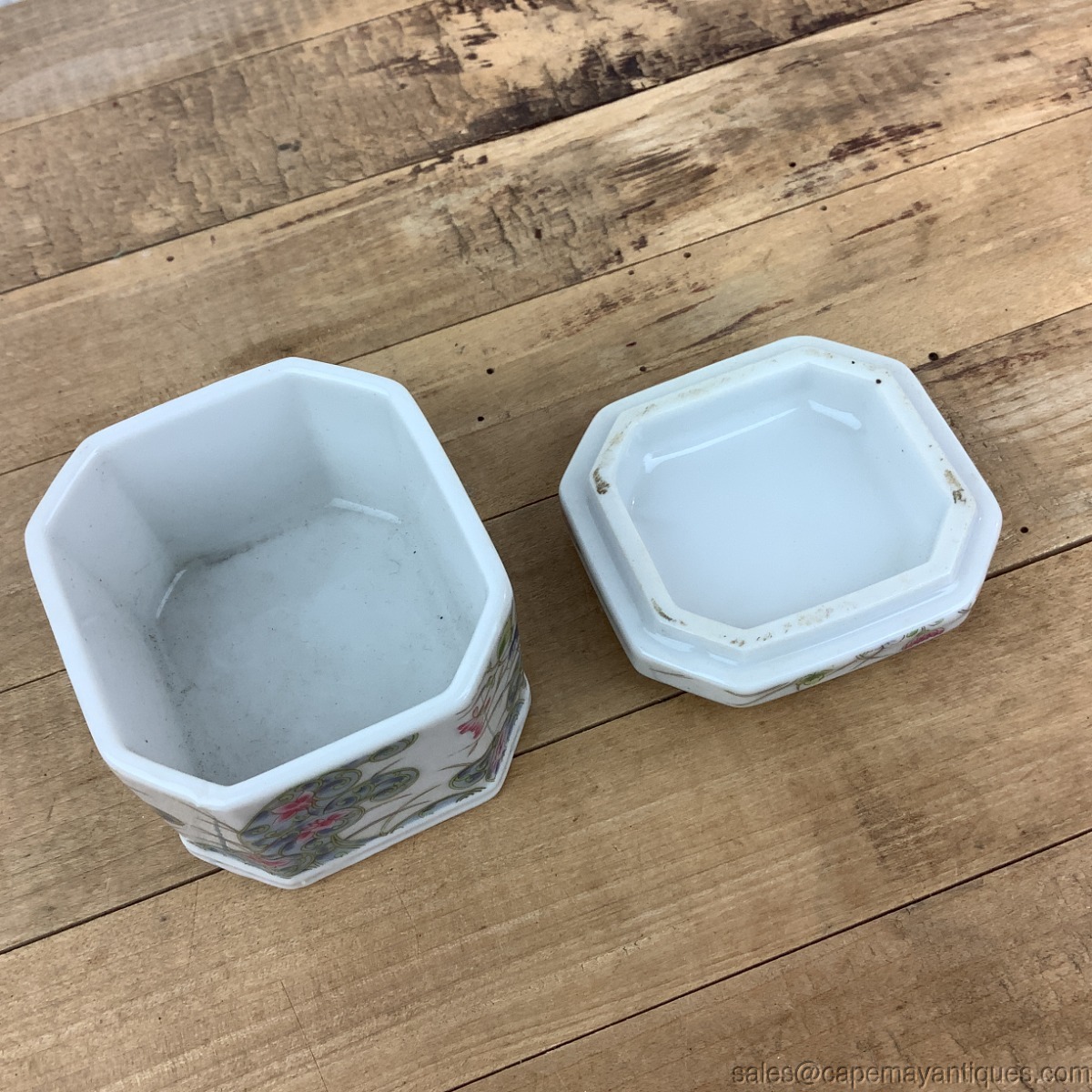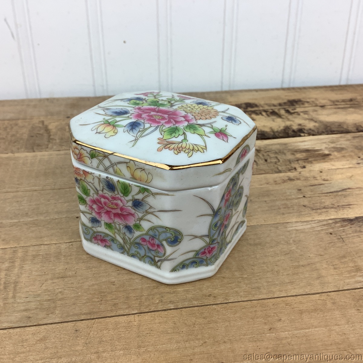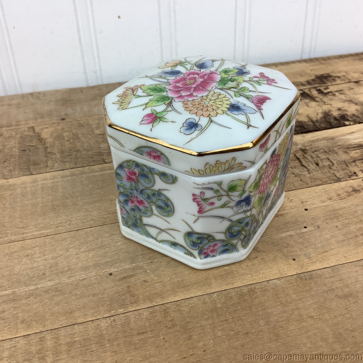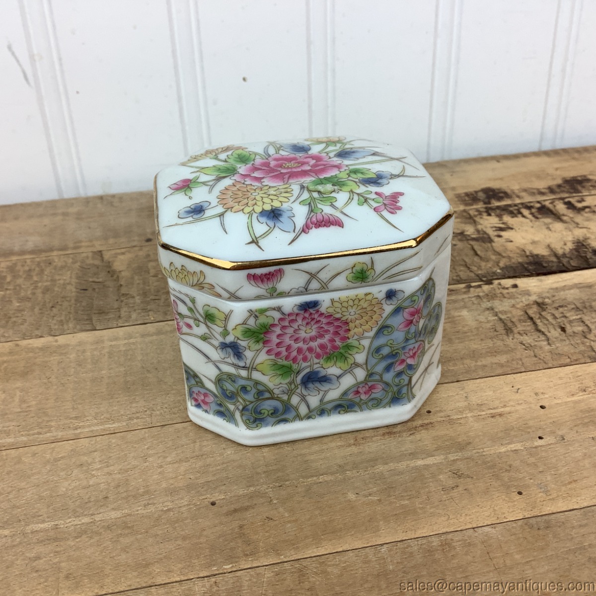 Laudel Porcelain Floral Trinket BOx Asian Flowers Pink Blues 8 Sided