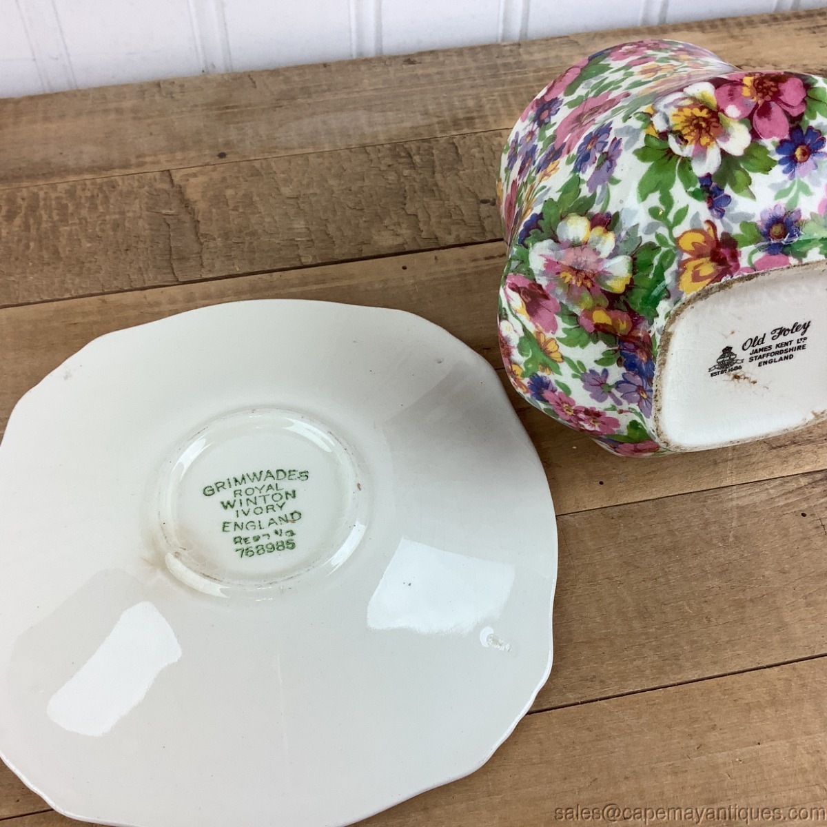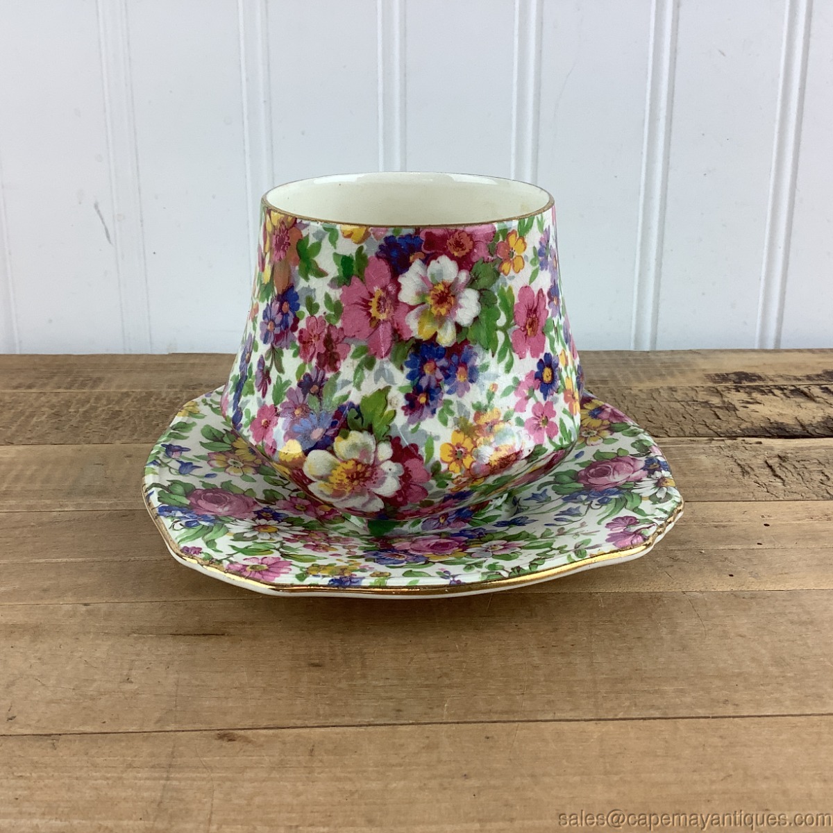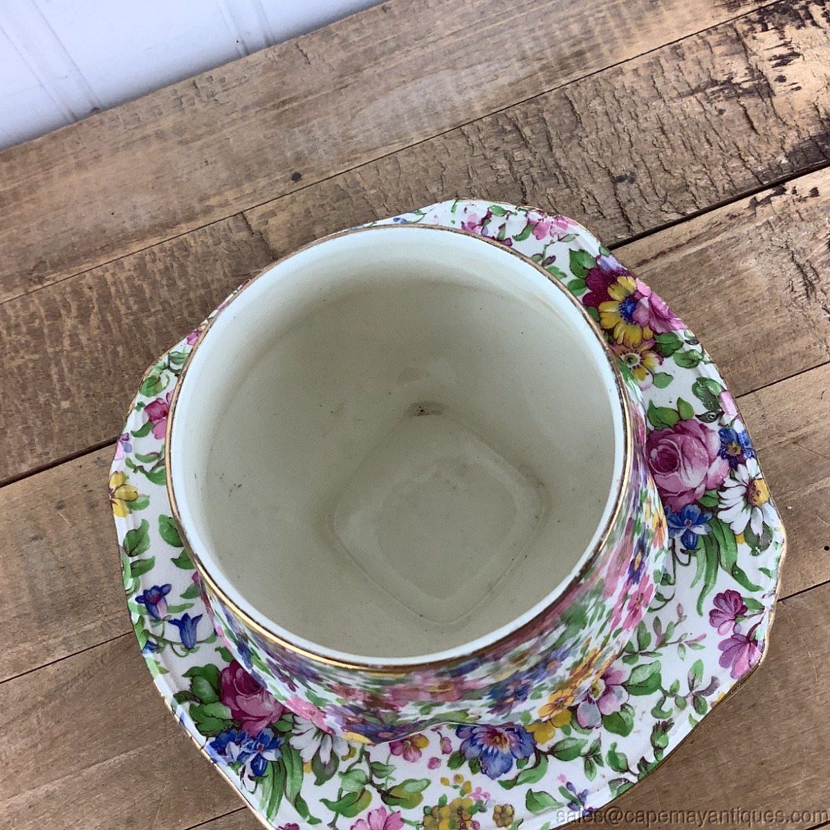 Old Foley Summertime Open Sugar Bowl w Royal Winton Under Plate Chintz England
