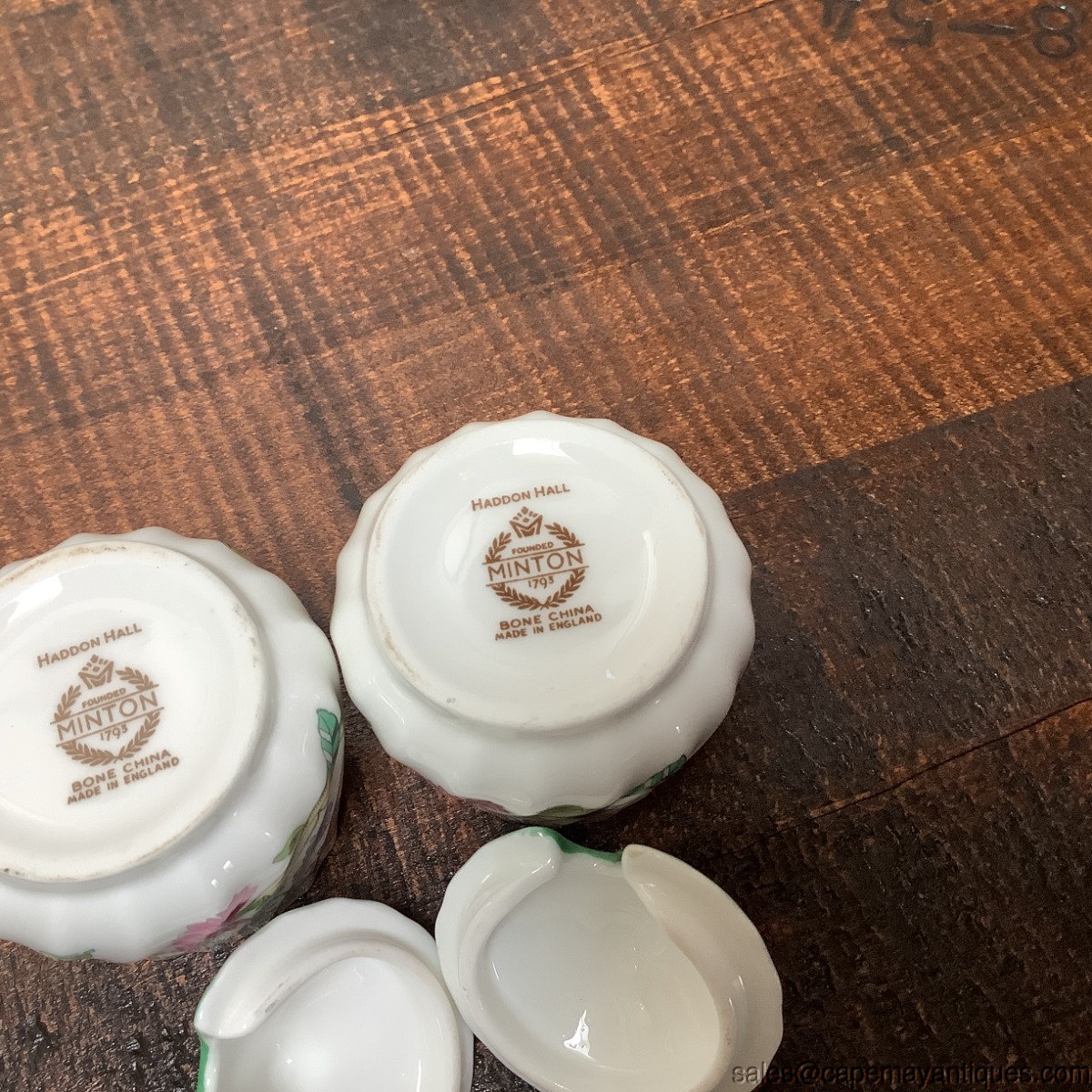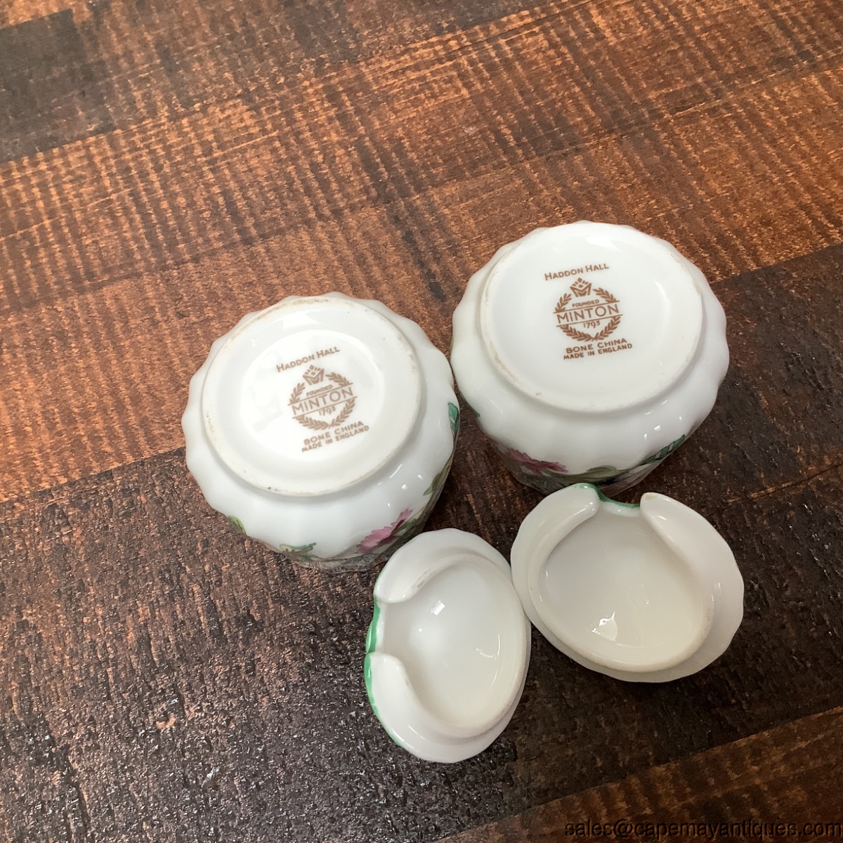 Pair Minton Haddon Hall Condiment Jelly Jar Jam Jar Lid w Notch for Spoon