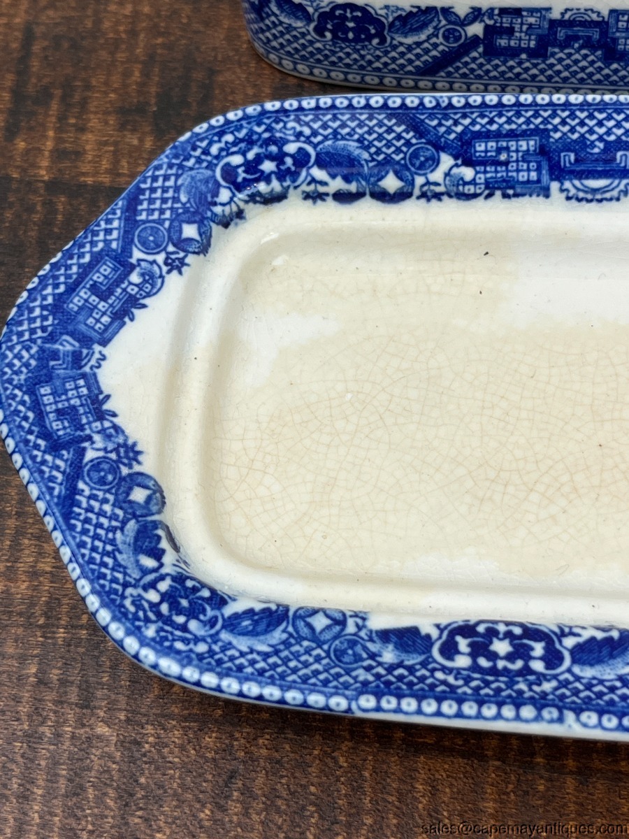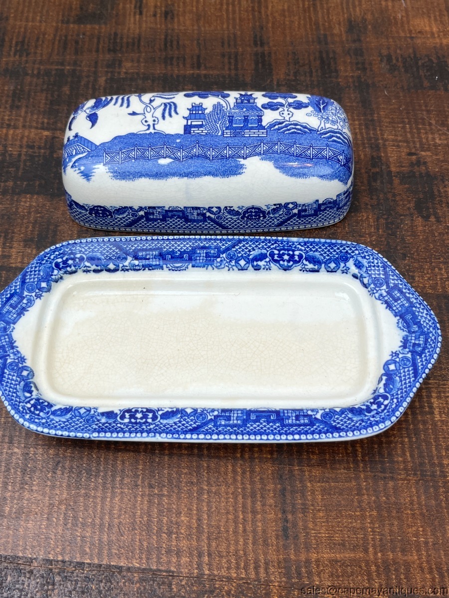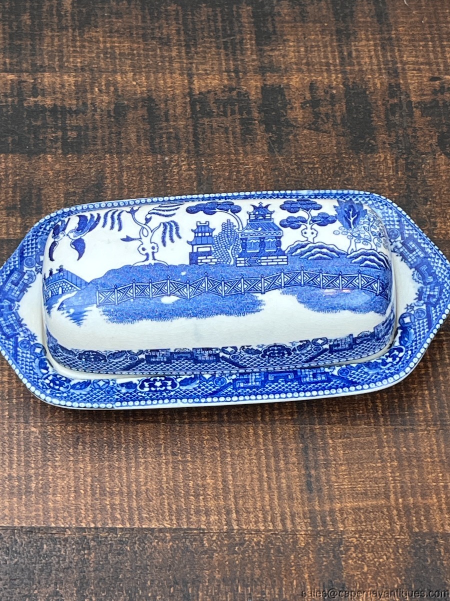Vintage Blue Willow Covered Butter Dish Oblong Japan