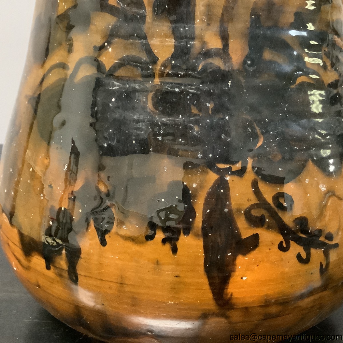 Vintage Pottery Large Vase Primitive Drip Glaze Black Floral Unsigned Studio 13"