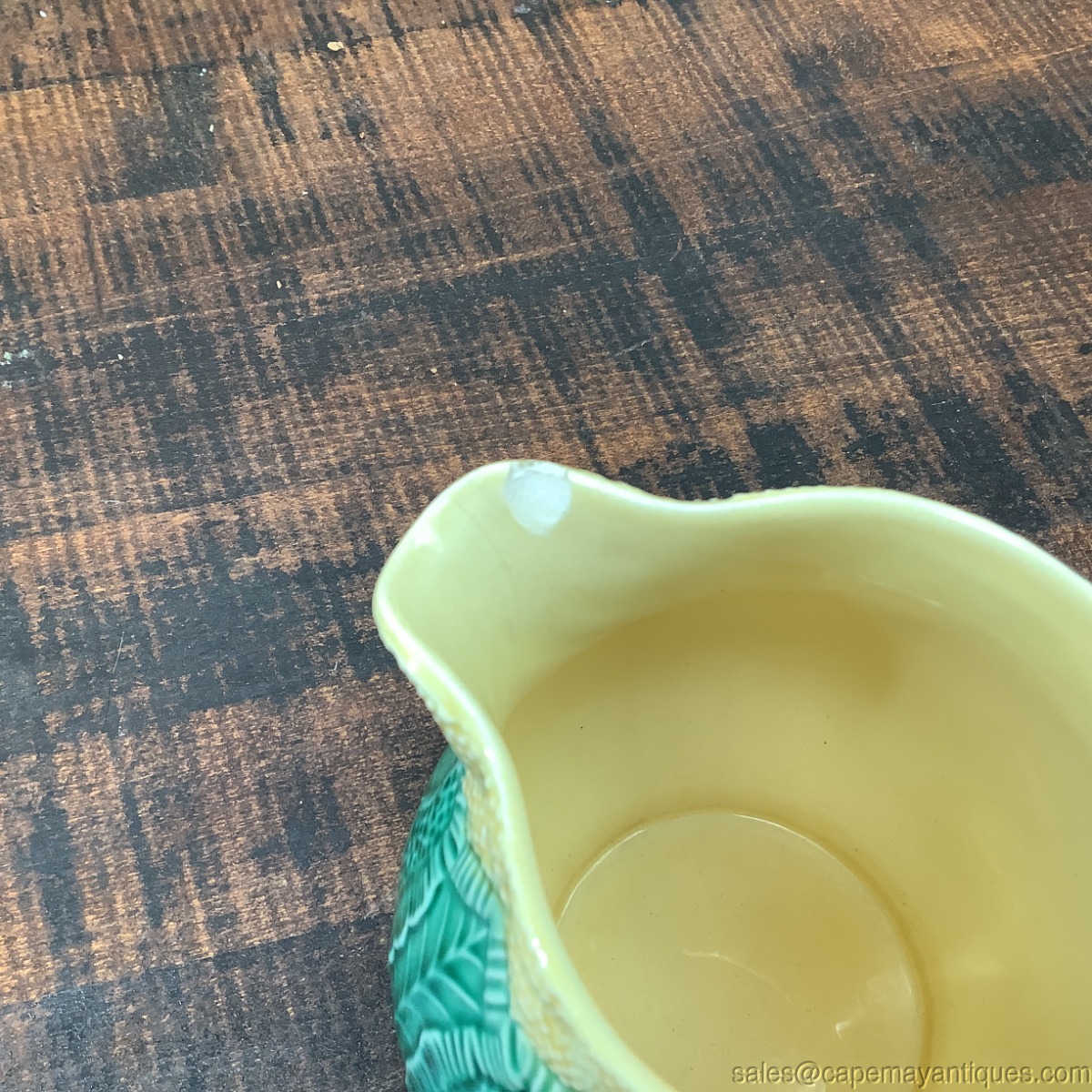 Gorgeous signed Wedgwood Made in England Cauliflower Ware First Produced by Josiah Wedgwood FRS 1760. This is later piece sometime after 1940's due to the Barlaston reference. The jug or pitcher is 4.5" tall, 4 1/8" tall to underside of spout by 6" wide and 3" wide at the rim. Damage includes a chip to the inside rim along side of an old thin hairline crack. the outside handle lower section has a fleck chip showing as white and it's hard to see but that fleck chip has a hairline crack that wraps around the side of the handle and runs behind the handle. Tried to photos. Sounds much worse then it really is but full disclosure here! lol. So pretty.
