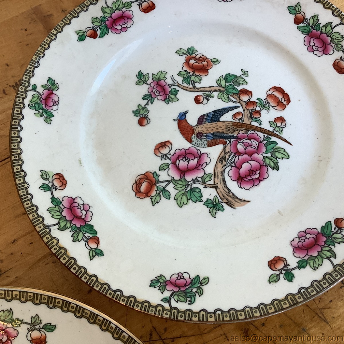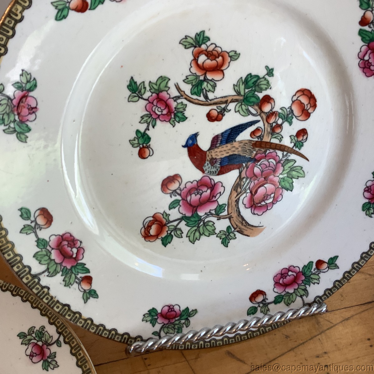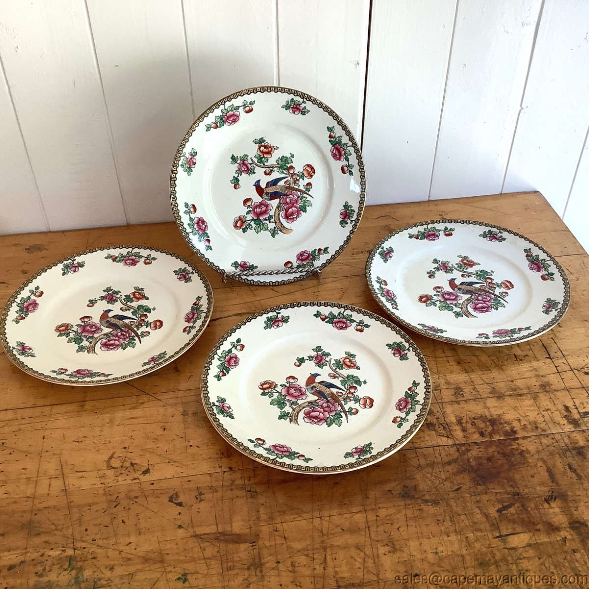 Whieldon Ware Pheasant 4 Salad Plates 8" Vintage English Porcelain