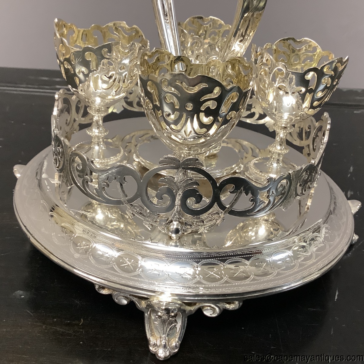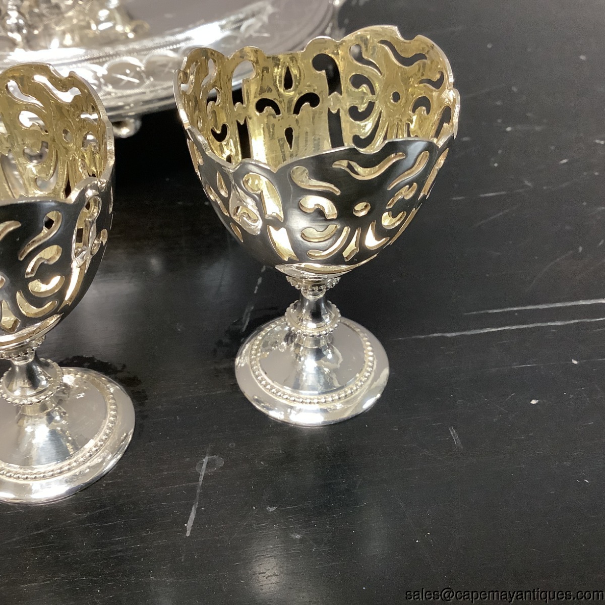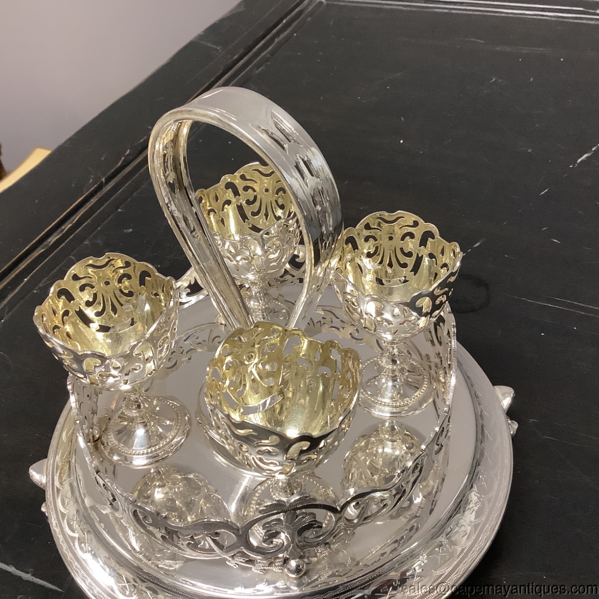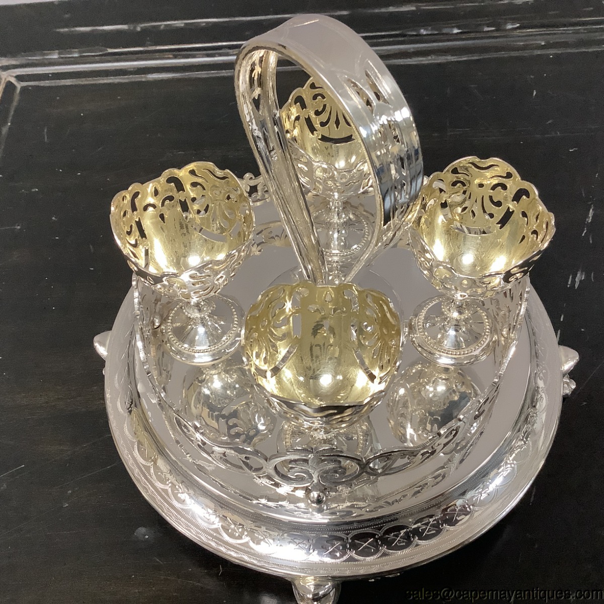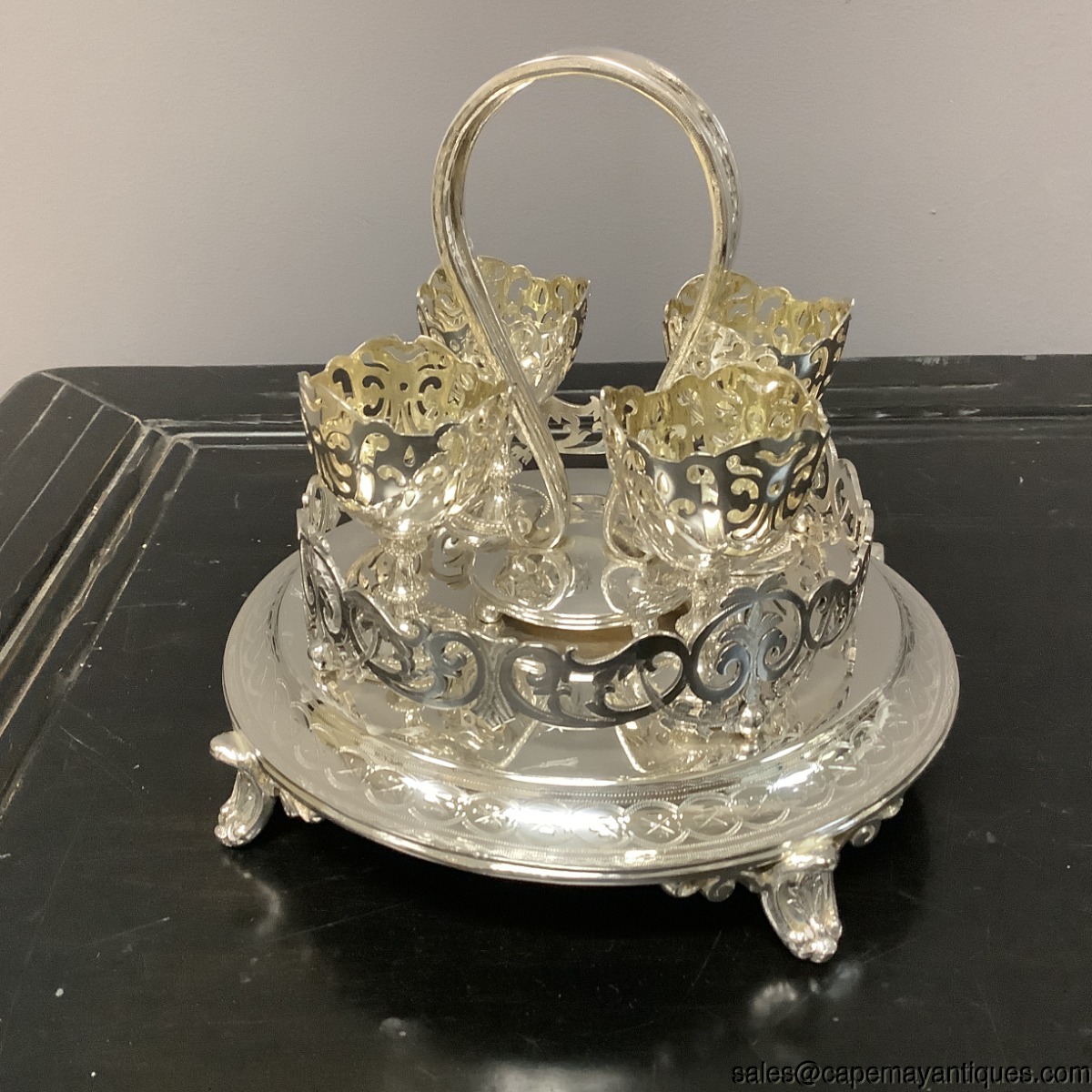 Silverplate Egg Cruet Stand Server Platform Tray 4 Reticulated Cups FP&S Mark