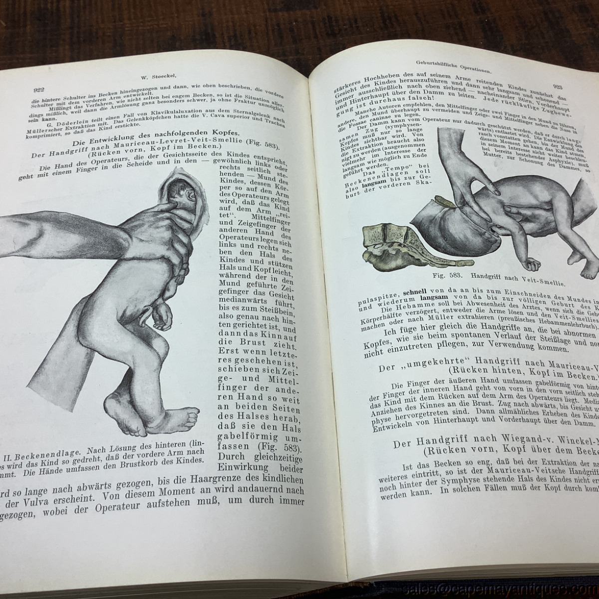 1935 German Medical Book Obstetrics Textbook by Stoeckel Blue Gold