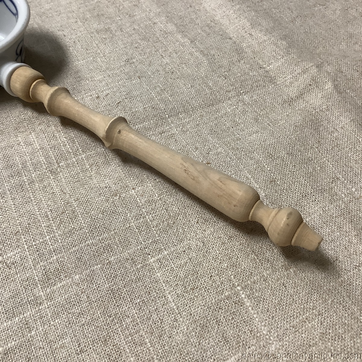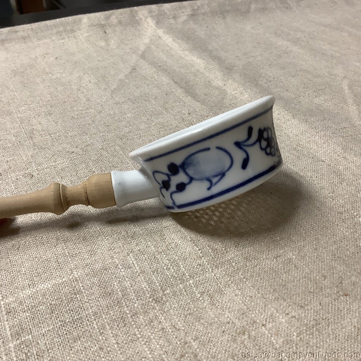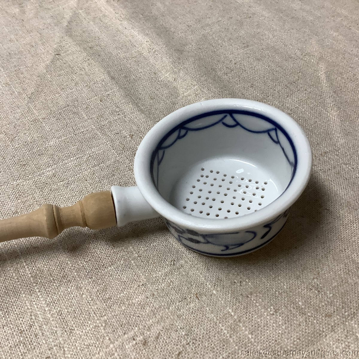 Antique Blue Onion Pierced Ladle or Cup Strainer Wood Handle Blue White Utensil