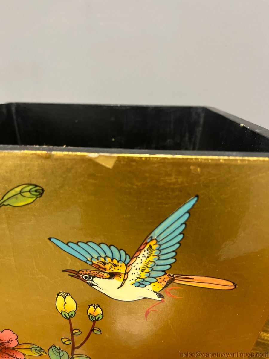 Oriental Asian Gold Lacquered Birds Floral Open Box Storage Newspapers Magazines