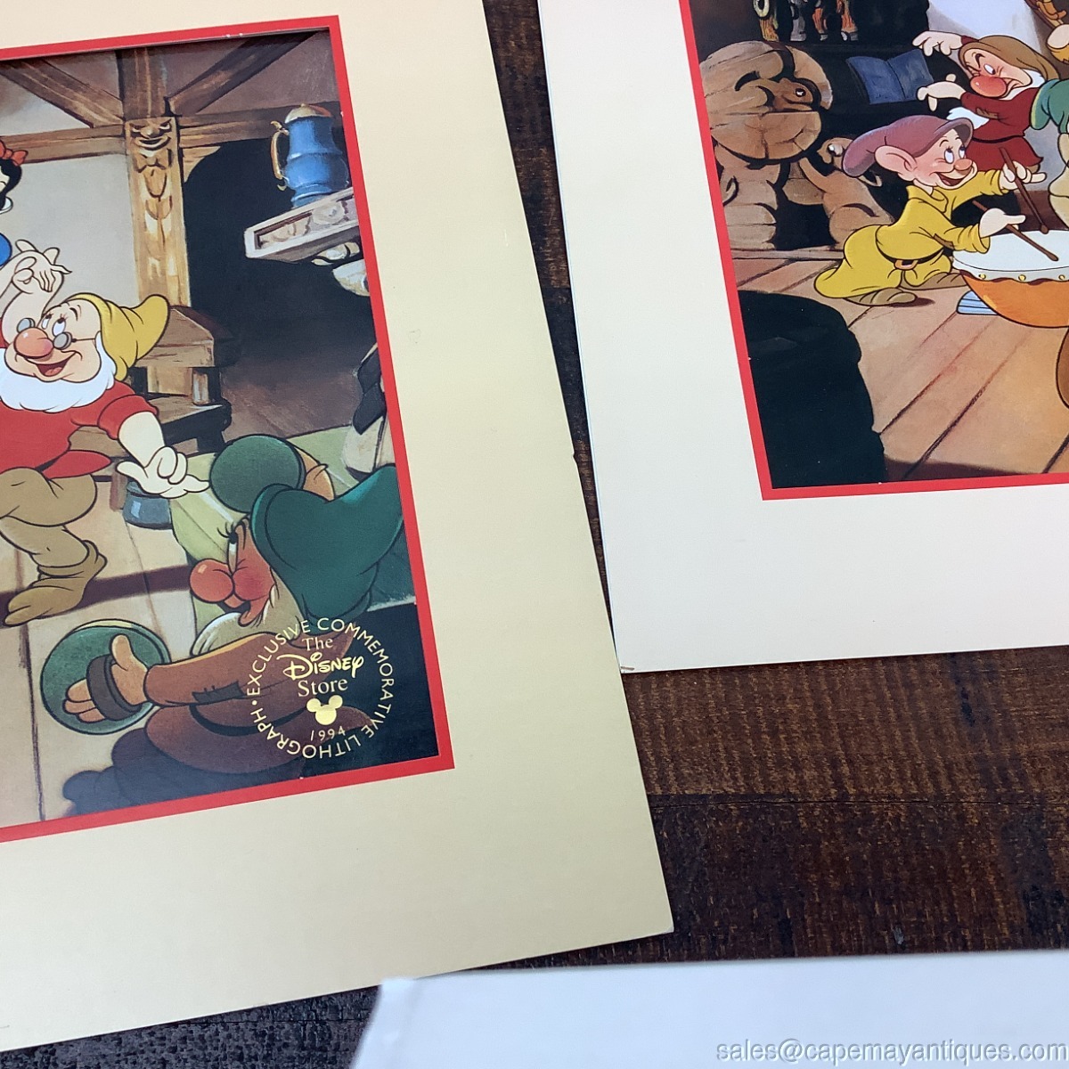 Pair 2 Walt Disney Lithographs Snow White and the Seven Dwarfs 1994 Disney Store