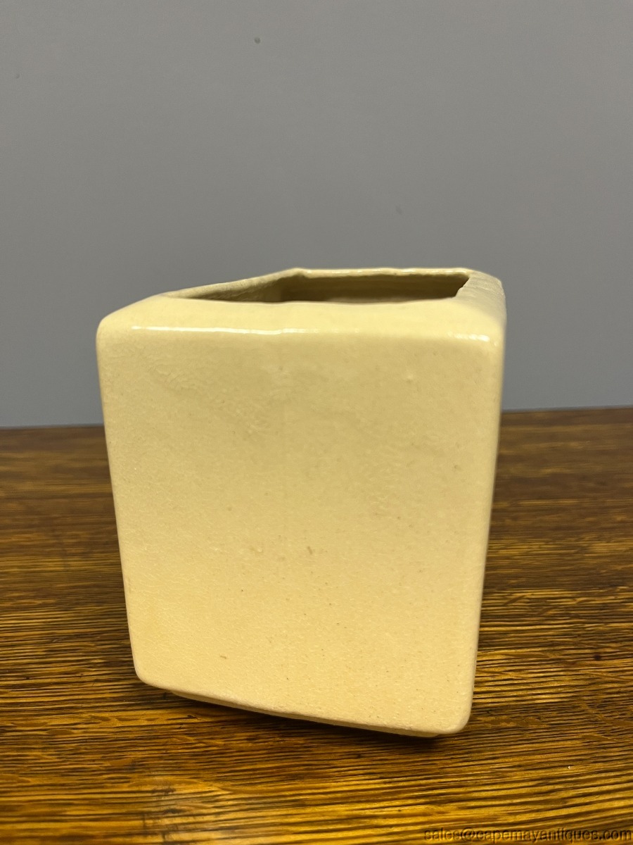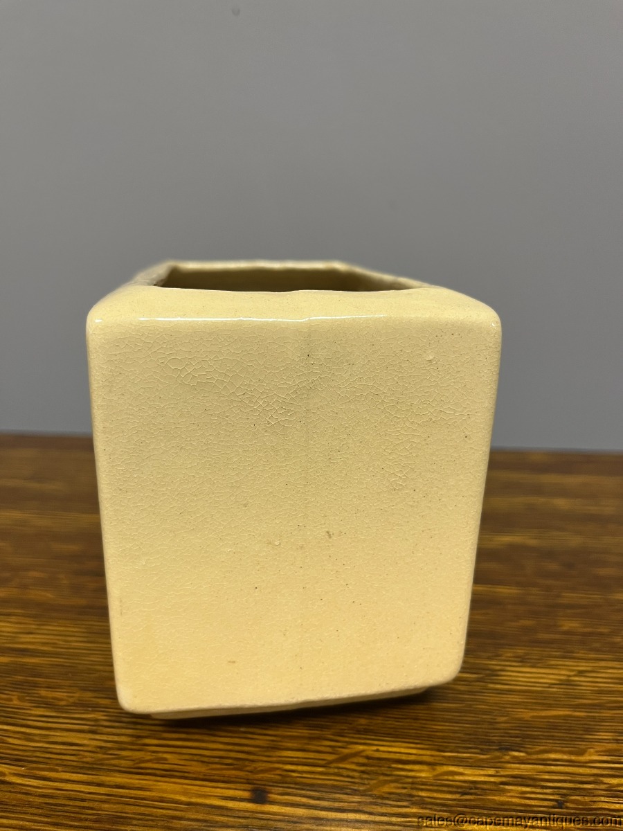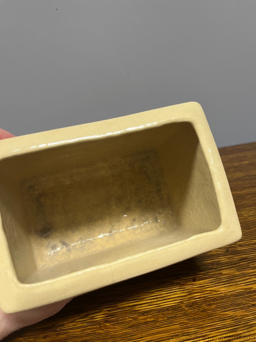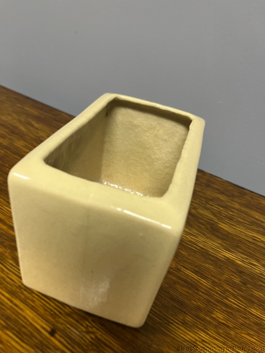 Lovely vintage Roseville RRPC pottery planter. Made in Ohio, USA. 5.5" length by 4.5"t all and 3.5" wide. Pretty front pattern of pink dogwood flowers or branches. Beige tone background. Good condition with no chips. Tiny small hairline crack on rim, very thin and small. Overall, very good condition for it's age.