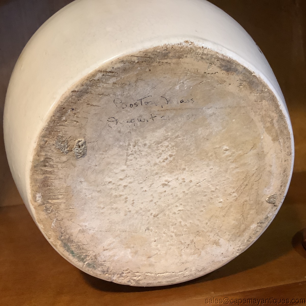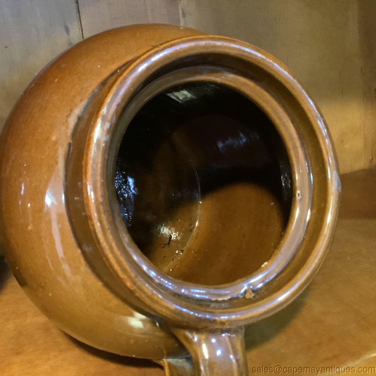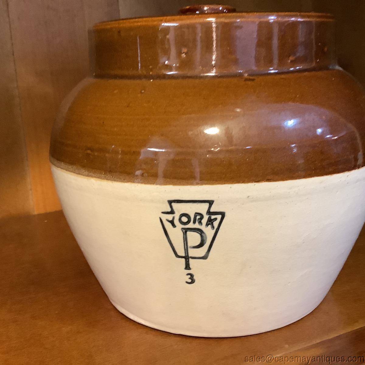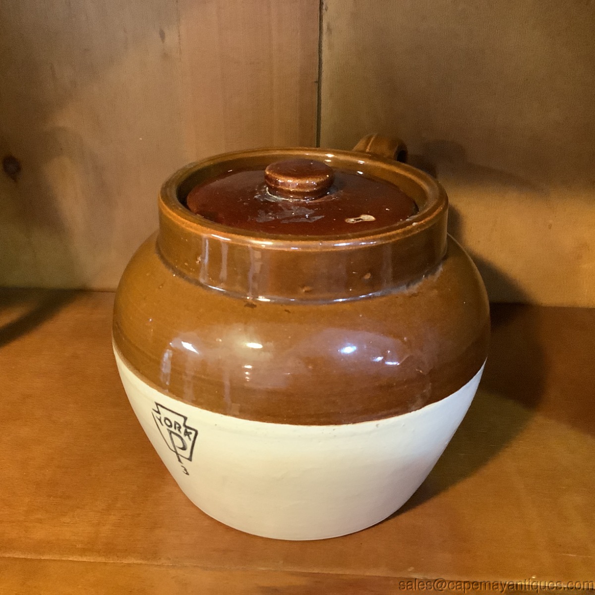 Lovely vintage bean pot with lid and side handle. Marked York P 3. Stands 7" tall to top of rim. No chips or cracks. Smooth and clean finish. Lid has some minor imperfections such as pock marks, small section of loss of glaze. Mark is York PA keystone dating from around 1930s. Durable high fired stoneware.