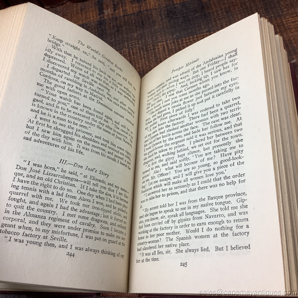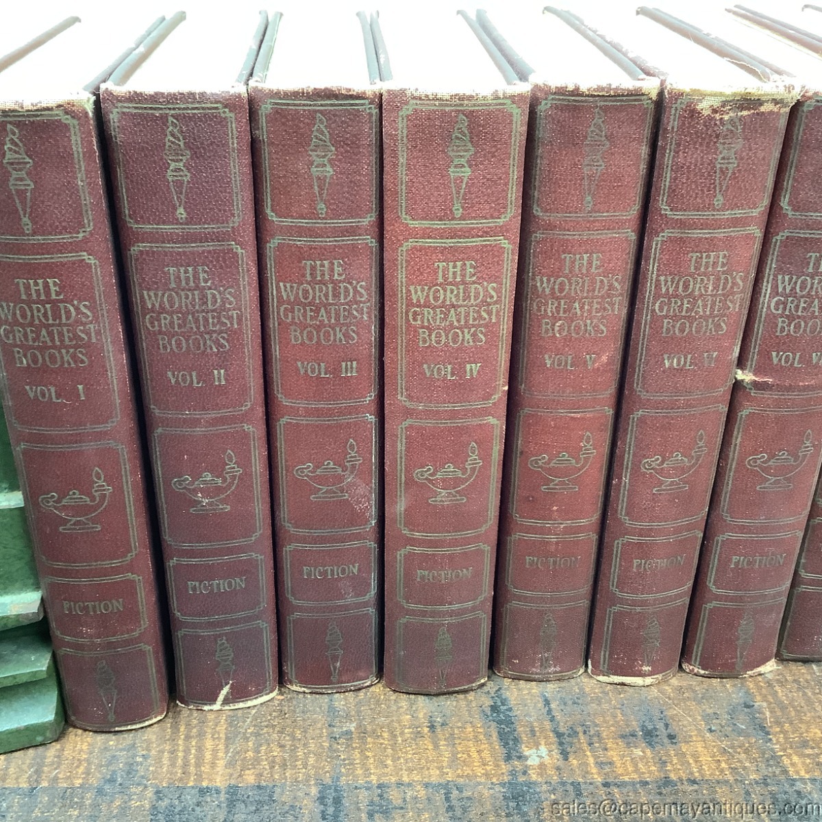 Antique set of books, The World's Greatest Books. We have volumes 1-15 and 20. Copyright 1910. Each book measures 7.5" by 5". Overall, good condition for being 116 years old. Some minor discoloration on the bindings, some wear on various corners of the books. The pages are clean, crisp as are bindings. No rips, dog ears, torn pages or smells. There are a total of 16 books. Volumes 1 through 15 plus volume 20.