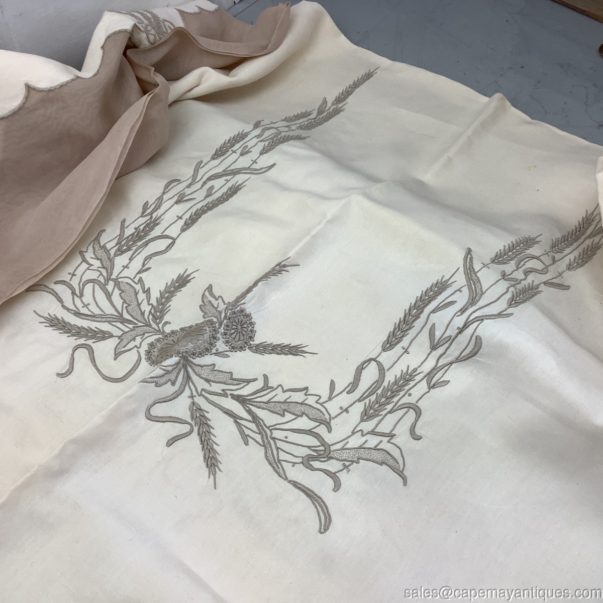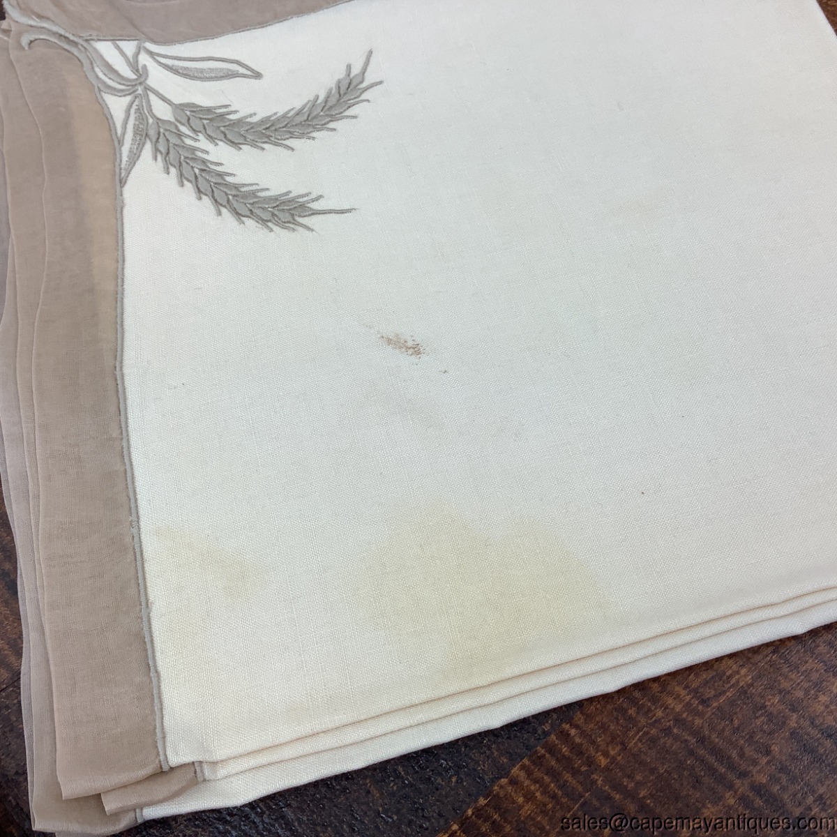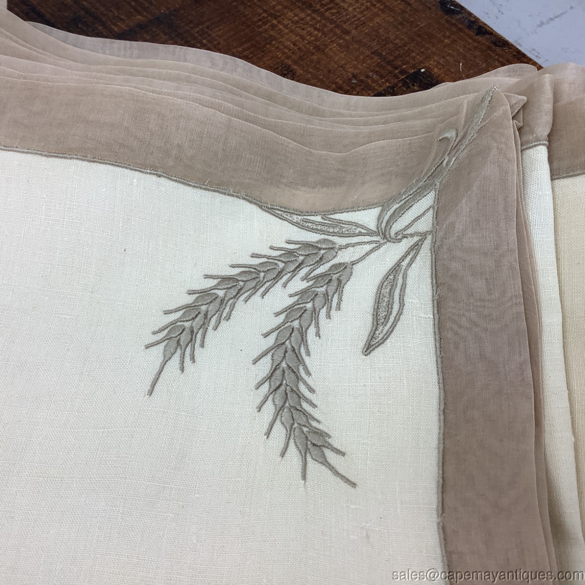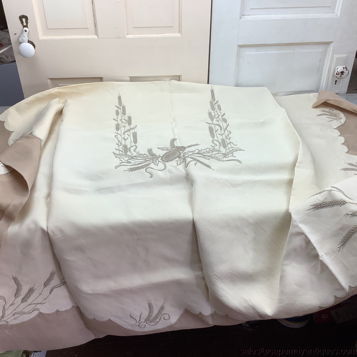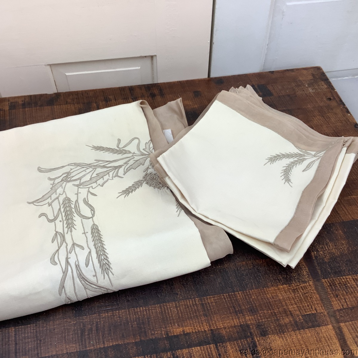 Vintage Linen Tablecloth 12 Napkins Beige Chiffon Border Wheat Sheaths 108x68"