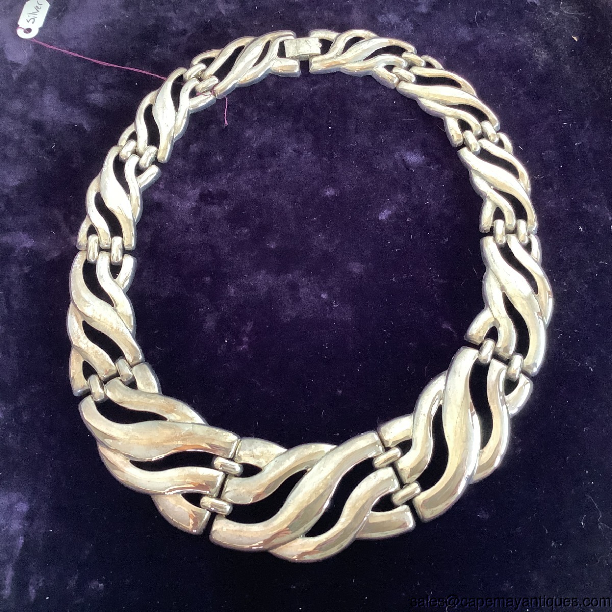 Vintage Silver Tone Necklace Hinged Links Abstract Design