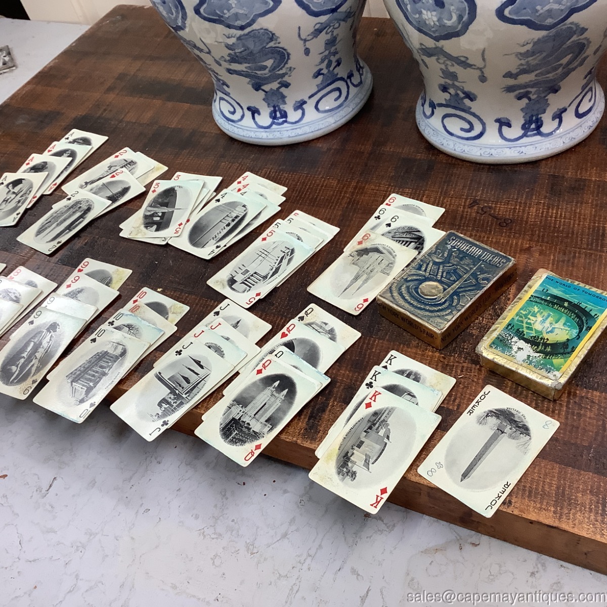 As shown with wear and some leftover cigarette smells. Missing one card #8, just one joker too. Each card has some wear as does box. Neat old set! Includes foiled box.
