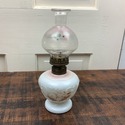 Antique Victorian Miniature Oil Lamp Milk Glass Cherub Angel Images 9" Tall