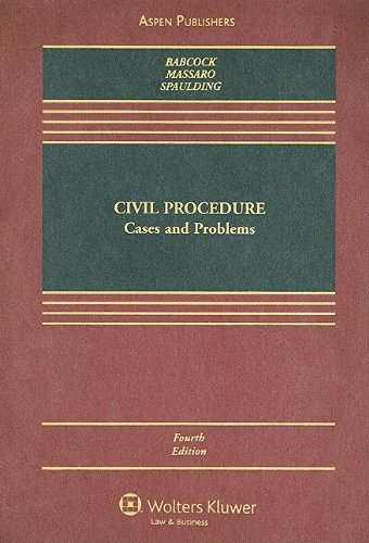 Don't waste your money on the newer edition! Check our feedback as a seller on Ebay for proof: Ebay Feedback. This listing is for (Civil Procedure: Cases and Problems) 4th edition (Pictured on the Left) by (Barbara Allen Babcock; Toni M. Massaro; Norman W. Spaulding). This edition has word-for-word the same information as ISBN: 1454822678 the 5th edition (Pictured on the Right), except for a small update and a different picture on the cover. All our books are in decent, usable condition or better and may or may not contain: highlighting, writing, cover and page wear, cds and additional material. If you are unsatisfied in any way with our product you can return it within 30 days for a refund.
