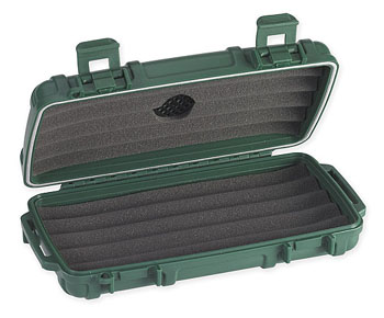 Holds up to 5 Churchill CigarsMade from Super Strong ABS Molded PlasticAirtight, Watertight and Crushproof2 Removable/Replaceable Locking ClaspsStainless Steel Latch HingesMolded Lock Ring for Added SecurityCoin Release for Air Pressure1 Humidifier Disc in LidCustom Urethane Foam Protects CigarsLanyard with clip for easy transportationCountry Club GreenDimensions (Inside): 7.88" x 3.97" x 1.55" Dimensions (Outside): 8.80" x 5.18" x 2.08"