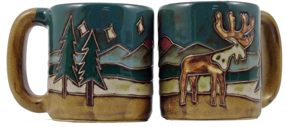 This Set Of Two Round Mugs With An Elk Design On Each Would Make A Wonderful Gift To Give Or Receive And On Any Occasion. Each Mug Is Fired Twice At High Temperatures And They Are Completely Finished By Hand. Natural Variations In The Shape, Color And Etched Design Gives Each Piece A Unique Personality. They Are Lead And Cadmium Free, Microwave And Dishwasher Safe As Well As Being Completely Food Safe.