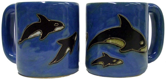 | One Individual  16 Oz Round Mug Orcas Design Functional Table Art By Mara Every Item From The Mara Collection Is A Unique, Handcrafted And A Functional Work Of Art. Natural Variations In The Color, Shape And Designs Give Each Piece Its Own Personality Which Makes Each And Every Piece A One-Of-A-Kind Masterpiece All Its Own. Photographs Are A General Representation Of The Product And Colors, Shape And Designs Will Vary. Dinnerware Is The Most Important Purchase That You Will Make For Your Home. On A Daily Basis, Family Members Gather Around Your Casual Dinnerware Set. Your Dinnerware Supports The Cheer, Warmth, And Security of A Family's Home. It Is Not Surprising That The Same Dinnerware Is Used For Entertaining Purposes And The Most Important Holidays Too! There Is Simply No One More Important Than Your Family. This Is Where Memories Begin. It Is Our Pleasure And Privilege To Bring You The Mara Collection Of Distinctive And Fine Stoneware. We Invite You To View And Enjoy Her Work As Much As We Do. Mara's Original Designs Are Hand Etched, Hand Painted With Glazes And Finished On Uniquely Shaped Stoneware Pieces. Her Functional Table Art Ranges From Over One Hundred Whimsical Mugs To Thirteen Complete Dinnerware Sets And Distinctive Home Furnishings. This Individual Mug With An Orcas Design On Each Would Make A Wonderful Gift To Give Or Receive And On Any Occasion. Each Mug Is Fired Twice At High Temperatures And They Are Completely Finished By Hand. Natural Variations In The Shape, Color And Etched Design Gives Each Piece A Unique Personality. They Are Lead And Cadmium Free, Microwave And Dishwasher Safe As Well As Being Completely Food Safe.