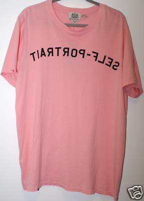 This is an authentic Juicy Couture Tee Shirt. The front of the Tee has Self Portrait in reverse print so when standing in front of a mirror you could read it. The color is light orange or a coral. The print is in black. MSRP is $58.00. Material is 100% cotton and is machine washable.