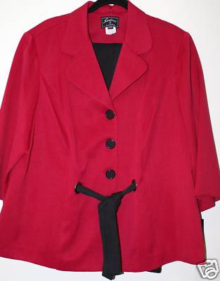 NWT Sweet 2-Piece suit, Red Jacket Black Pants, 22W