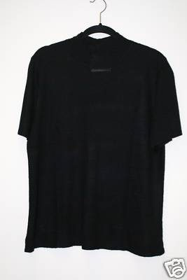 This is a nice black fine gauge sweater featuring a crew neck and short sleeves. This sweater is very soft and light, perfect under a suit jacket or worn alone. A 1X should fit Bust 40 ½-44”, Waist 33 ½-37”, Hips 43-46 1/2” and is 28” long. The material is 100% Acrylic and is machine washable.