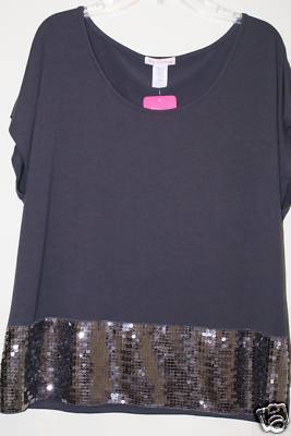 NWT One Clothing Gray Scoop Neck, SS, Top with Sequins,