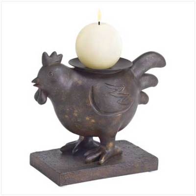 A plump, plucky clucker cheerfully holds aloft your favorite pillar