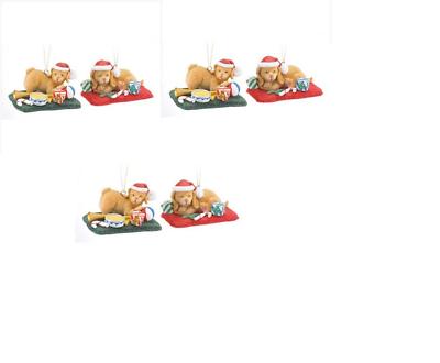 3 sets, 6 total--Two adorable pups lie gratefully amidst their Christmas gifts