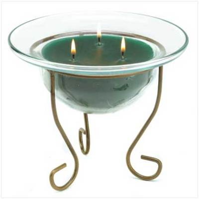 Dimensions And Item Details: Weight 3.4 lbs. Paraffin wax in glass bowl and metal stand. 8 3/8" diameter x 7" high..