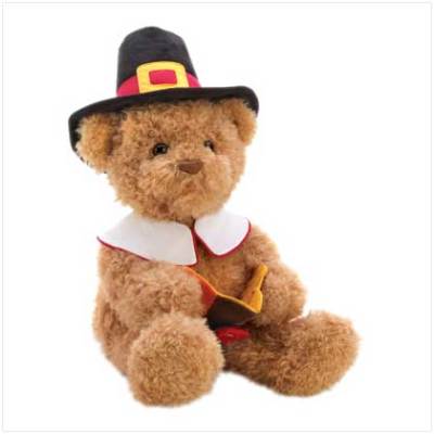 Description: Celebrate one of America's favorite holidays in a whole new magical way! Animated pilgrim bear reads the story of Thanksgiving with a squeeze of his paw, complete with music and movement. On/off switch on his hand to activate. On/off switch on bottom of the doll to preserve batteries Dimensions And Item Details: Weight 1.6 lbs. Plastic and Polyester fabric with polyester fiber fill. /!\ WARNING: CHOKING HAZARD - Small parts. Not for children under 3 years. Three AA batteries included. Spot clean only. 7 3/4" x 11" x 13" high. This item is brand new.