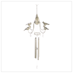When stirred by the faintest breath of breeze, the pipes of this chime come alive to bless the air with lilting music. Stylish chime gets an artistic treatment with chandelier styling, a quartet of birds with sparkling "crystal" drops, and a sand-colored faux-stone finish. Polyresin/iron with acrylic accents. 10 1/8" x 10" x 19 1/2" long.