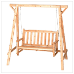 Rustic garden swing is perfect for porch or patio; comfy bench is roomy enough for two! Oil-and-lacquer finished for lasting beauty outdoors. A restful way to dream away the day! Russian pine. Some assembly required. 67 1/3" x 33 1/2" x 65" high. Due to the size and weight of this item, it can only be shipped within the Continental U.S. via UPS Ground (no PO Boxes).