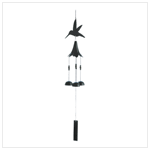 Fill your garden with the sweet music of dancing bells! Lovely windchime features a timeless design, with simple cutout hummingbird and bell shapes and an elegant matte black finish. Weight 0.7 lb. Iron. 5 1/2" x 5" x 34" long.