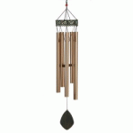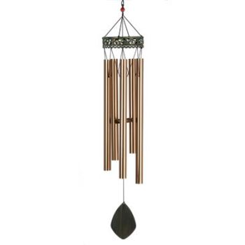 Decadently drenched in a rich copper finish from lacy crown to pendant, this musical chime adds sophistication to any serene outdoor retreat! Metal hook at top for hanging. Weight 1 lb. 5.5" diameter x 33" high. Iron and aluminum. UPC# 817216011122.