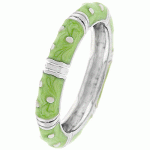 White Gold Rhodium Bonded Apple Green Enamel overlay Eternity Ring with 3 Silvertone Polk-A-Dots and 3 Silvertone Stripes in 7 Sections. Can\'t choose between stripes or Polk-a-dots? Well this unique design pulls the two opposites together so you don\'t have to choose on a silver tone eternity band with a Apple Green enamel base. Stick to the basics and stack \'em up! Available in an assortment of colors. White Gold Rhodium Bond is achieved using an electroplating process that coats the item with heavy layers of rhodium, a close cousin of platinum that costs three times as much, which gives our jewelry a platinum luster. - Base Metal: Lead Free Alloy