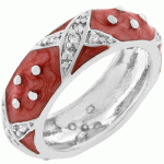 White Gold Rhodium Bonded and Pink Hand Applied Enamel Overlay Eternity Ring with Handset Clear CZ Xs and Silvertone Polk-a-dots. Doesn\'t this ring make you wanna party? Pink Enamel and silvertone dots and Xs with Clear CZs POPing like a strobe light on a silvertone eternity band. Our Boogie Down series is fun and full of color. White Gold Rhodium Bond is achieved using an electroplating process that coats the item with heavy layers of rhodium, a close cousin of platinum that costs three times as much, which gives our jewelry a platinum luster. - Base Metal: Lead Free Alloy