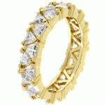 14k Gold Bonded to an Eternity Style Featuring Pave Trillion Cut Clear CZs . Every jewelry fashionista has one of these in their arsenal of high end goods. If you don\'t have an eternity band featuring pave trillion cut stones, then you better get your fingers on one. 14k Bonded Gold is achieved using an electroplating process that coats the item with heavy layers of 18k Yellow Gold and color-treated to a perfect 14k Hamilton gold color. - Base Metal: Lead Free Alloy