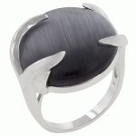 White Gold Rhodium Bonded Cocktail Ring with Gray Eye Cabochan in a Prong Setting in Silvertone. This contemporary cocktail ring is a good addition to any wardrobe. White Gold Rhodium Bond is achieved using an electroplating process that coats the item with heavy layers of rhodium a close cousin of platinum that costs three times as much which gives our jewelry a platinum luster. - Base Metal: Lead Free Alloy